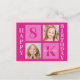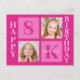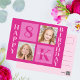 Söt 2-foto kvadratisk födelsedags vykort för en liten flicka. Fira ditt barns födelsedag med söta fotografier av dem på detta vykort där du kan lägga till dina egna fotografier med snygga rosa rutor. Lägg till deras namn och ålder i varmt rosa.