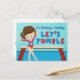 Denna söta flickors gymnastik födelsedagsfest inbjudan har en söt brunett gymnast flicka som står framför en bom. Hon har en röd leotard och ler för att inbjuda människor till hennes roliga tumlande barnkalas på det lokala gymmet. Vacker blå anpassad text för ditt barn. Låt oss tumla!