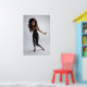 Fin tjej i svart klänning som dansar på gråttets bakgrund