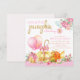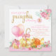 Flickor liten pumpa första födelsedagsinbjudningar med söta rosa och orange och guldpumpor och ballonger på en rosa blomsterprickig bakgrund med söt rosa och guldfärg. Du kan enkelt anpassa denna söta lilla pumpa födelsedagsfest inbjudan för ditt evenemang genom att helt enkelt lägga till dina detaljer. Detta är en tryckt design utan riktig folie, band osv.