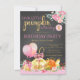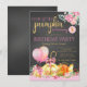 Flickors lilla pumpa födelsedagsfest inbjudan med söta rosa och orange och guld pumpor och ballonger på en krit tavla bakgrund med söt rosa och guld text. Du kan enkelt anpassa denna söta lilla pumpa födelsedags inbjudan för ditt evenemang genom att helt enkelt lägga till dina detaljer. Detta är en tryckt design utan riktig folie, band etc.