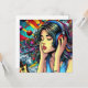 Färgfull ai-konst som skildrar en tjej med hörlurar på att lyssna på musik med en gitarr i bakgrunden. Tecknaden för popkonst stil tecknad bok.