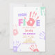 Flickor med fem pastel-födelsedagsinbjudningar, färgstark flicka 5:e Födelsedagsfesten, redigerbar mall som målar Barns födelsedag Inbjudan