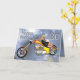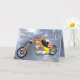 En blond flicka som ljuger över en helikoptermotorcykel med stjärnor och moln i bakgrunden. Ett underbart födelsedagskort för en motorcykelentusiast.