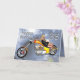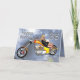 En blond flicka som ljuger över en helikoptermotorcykel med stjärnor och moln i bakgrunden. Ett underbart födelsedagskort för en motorcykelentusiast.