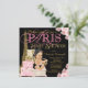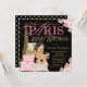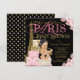 Paris bebis shower inbjudningar med vacker guldfärgad Eiffeltorn, eleganta Paris presentförpackningar, söt bebis flicka som bär en söt rosa och svart outfit och béret och pärlhalsband med fin rosa Paris text på en rik rosa blomsterbakgrund. Denna vackra Paris bebis shower inbjudan är lätt att anpassa för din händelse genom att helt enkelt lägga till dina detaljer i den typsnittsstil och färg, och formulering du väljer.