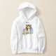 Den vackra personligen Girls, vit zippad hood, har en Uggla-familj, ett stort brunt uggla och två mindre söta baby ugglor, ett blått och en rosa, sitta på en träd gren. Namn på hoodie kan ändras så att det blir helt personligt. En underbar gåva och perfekt att kombinera med matchande presenter och kontorsmaterial. Perfekt för uggla älskare.