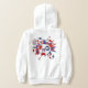 Den här söta flickans fotnotsskon har en "explosion" av olika storleka röda, vita och blå fotbollar och röda, blå och vita stjärnformer - fotbollskulornas typiska svarta paneler har färgats om och blått - anpassar sig med idrottsmannens namn, monogram och jersey nummer - designen finns på baksidan av hoodie men kan flyttat till eller dupliceras på framsidan - av katz_d_d zynes