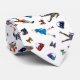 Fin abstrakt mönster med små kvinnohandväskor och bögar på vit bakgrund.