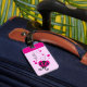 Flickor som flyger hjärtstegybug rosa med namn bag bagagebricka