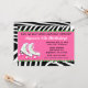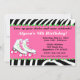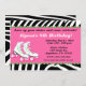 Bjud in dina gäster på ett sött och roligt sätt till din skateboard-födelsedagsfest med denna roliga rosa och zebrarutiga inbjudan.