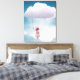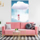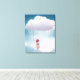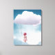 Flickor som håller vitt fluffmoln med en sträng som en ballong. AI-illustration.