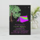 En färgstark flickas camping i födelsedagsfest inbjudan med en nybörjare i rosa tält och träd med tvillingande ljus. Anpassa all text till din dotters glampa party.
