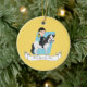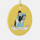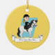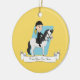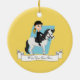 Flickor som rider en häst tecknad julgransprydnad keramik