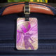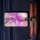 Bagagetaggen med volleyball för hennes gigantiska volleyball-grafik och den silhuetterade kvinnliga volleyball-spelaren som hoppar på nätet med temat rosa och lila färg - anpassa med sin info - av katz_d_zynes