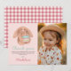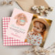 Denna söta och flickaktiga plyschkanin barn födelsedag tackkort har en mjuk kaninleksak på framsidan, utrymme för att lägga till ett foto och rosa gingham på baksidan. Perfekt för en kanin, skogs- eller gosig flickors födelsedagstema.
