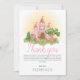 Det här söta och flickaktiga tackkortet för födelsedagen har ett rosa fantasifullt förtrollat slott med en prins, prinsessa och blommor. Den perfekta magiska designen för ditt barns födelsedag!