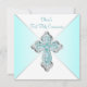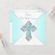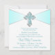 Flickas tealblå första kommunion inbjudan med elegant tealblå och silver diamantkors på en vacker tealblå bakgrund. Du kan enkelt anpassa denna vackra tealblå första kommunion inbjudan genom att lägga till dina evenemangsuppgifter i teckenstorlek och färg, samt formulering efter eget val.