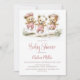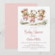 Fira den förestående ankomsten av din lilla glädje genom att inbjuda dina vänner och nära och kära till din babyfest med denna inbjudan som visar tre söta teddybjörnar som bär rosa prickiga overaller och hoppar hage. Den anpassningsbara texten låter dig enkelt lägga till ditt namn, datum och tid för firandet samt RSVP-informationen. En mängd olika papperssorter och hörnstilar finns tillgängliga för dina unika inbjudningar, tillsammans med möjligheten att ladda ner om du föredrar ett digitalt format.
