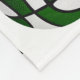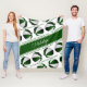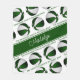 Den här söta basketens fleece-filt har den realistiska bilderna av basketbollar som har växlande grönt och vita paneler placerade i en vinklad speglad mönster - frasen "basketbollen är min lycklig ställe" i ett avslappnad handskrivet stil-typsnitt i gröntar mellan de vinklade raderna av basketskulor - idrottsmannens namn kan vara personlig på en liknande vinklad fullt grönt - bakgrunden är färgen vit - av katz_d_zynes