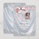 Rosa foto förstagångskommunion inbjudan med elegant vit satin och vackra pärlor och rosa band med kors och hjärta, och vacker rosa bildram för ditt foto. Denna vackra vita inbjudan till förstagångskommunion kan enkelt anpassas för din fest genom att helt enkelt lägga till ditt foto och evenemangsinformation i den typsnittsstil, färg och formulering du väljer. Du kan beskära ditt foto och flytta ramen vart du behöver, samt göra den mindre eller större. Detta är en tryckt design utan riktiga band, slingor, pärlor, glitter etc.