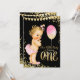 Flickors 1-årsdag inbjudan med vacker guld folie skrift och söt liten flicka som bär rosa rufflade byxor och en rosett på en guld glitter vimpel bakgrund. Du kan enkelt anpassa denna eleganta guld glitter och folie 1-årsdag inbjudan genom att lägga till dina detaljer i den typsnitt stil och färg du väljer. Du kan också ändra bakgrundsfärgen. Detta är en tryckt design med ingen riktig folie eller glitter.