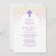 En modern och nutida baptismdesign för deras stora dag! Rosa- och lila-konfetti och den enkla typografin ge utformar detta som en klassisk, roligt-vib.