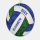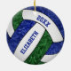 Den här flickans volleyball-prydnad har en realistisk bild av en stiliserad volleyball som har en blommigt kaleidoskopisk mönster som blandats med sin grönt och blå paneler - hennes namn och helgdag år är anpassade - av katz_d_zynes