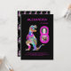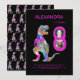 Fira flickan som älskar dinosaurier på sin 8-årsdag med denna livfulla, fantastiska inbjudan i rosa och svart med två fotokollage för dinosaurie-tema födelsedagsfirande för flickor på 8-årsdagen. Perfekt för flickan som älskar dinosaurier. Med en färgglad, iögonfallande T-Rex-illustration i starka, djärva färger är denna inbjudan det perfekta sättet att sätta scenen för en spännande fest. Designad av konstnären Catherine Sweetman. Den moderna typografin i varmt rosa på en slående svart bakgrund gör det enkelt att anpassa med alla festeredetaljer, 2 speciella födelsedagsflickors fotografier och dina gäster är redo för ett dino-mite-äventyr! Denna roliga och unika