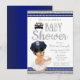 Flickors polis baby shower inbjudan med söt liten babyflicka som bär en vit tutu, pärlhalsband och söt polishatt på en blå och silver bakgrund. Denna polis baby shower inbjudan kan enkelt anpassas för ditt evenemang genom att helt enkelt lägga till dina uppgifter i den teckensnittsstil du väljer. Du kan också lägga till en bakgrundsfärg. Detta är en tryckt design utan riktig folie, juveler etc.