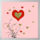 En vacker utskriftsdesign för att dekorera flickans sovrum - många röda och gyllene färg-hjärtan på rosans anpassade bakgrund