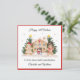 Julkortet är lämpligt för blandade twillingar eller ett enda barn vid första eller andra jul. Utformningen omfattar vattenfärgen snöflingor, Julgranar, ett gingerbrödhus, en flicka och en pojke som gingerbrödtecken och snögubbe.