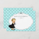 Råd till föräldrarna för babyduschkort med ett vackert flicka med en söt svart klänning på en vacker tårblått diamantbakgrund. De här snygga tealblåa baby och företagskorten är lätta att anpassa för evenemanget genom att helt enkelt lägga till den text du vill ha. Du kan flytta mer från silver-dekoratet och flytta och ändra storlek på baby efter behov.