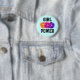 Det här är en väldigt söt, giftig design med tre ljusa, färgstarka blomblommor och en bildtext som säger "Girl Power". Bakgrunden färg är ljusblå. Om du vill ändra bakgrunden klickar du på färg "Anpassa den!" pin. Den här lapel-knappen skulle vara ett bra köp för vilken tjej som helst.