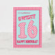Ett sött 16th födelsedagkort för en flickvän, med en nätt retro känselförnimmelse. Breven, numrerar, och gränsen är i rött, och den vitkontrollgingham och polka dots på en himmel slösar bakgrund. Du kan ändra det inre meddelandet, om du önskar.