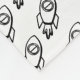 Svart och vit skiss av en uppåtflygande raketer med brand i slutet.