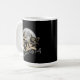 Kaffe mugg med "Flin Varg" logotyp och svart bakgrund.