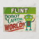 Ett lustigt Flint Michigan vintage resor-vykort med en vänlig robot med roligt retro stil som säger: "Flint, Robot Capital of the world!"