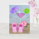 Rosa flip-flops i strandsand med cocktaildryck och papprare paraply för pension.