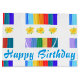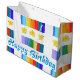 Roligtens moderna designerväska i grattis på födelsedagen. Anpassa texten för varje särskild händelse, eller firande, för familj eller vänner. Färgstark blommigt i lappverk.
