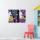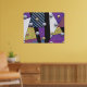 Detta är en dynamisk abstrakt där marmorerade sfärer verkar levitera över en kaleidoskopisk arrangemang av geometriska former. Starka kontraster skapas med rand, solida block av lila, blues och en levande grönt mönster som liknar amebiskt liv, allt mot nakna vita utrymmen som förstärker känslan av tredimensionellt djup.