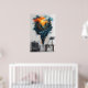 Surrealist art of a suspended forest on a floating island with vibrant sunset. Watercolor style with artistic splatters. Perfect for murals, interior decoration and posters. Bring nature and imagination to your space with this calm and inspiring work in warm and cool colors. Ideal for modern rooms.