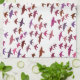 En flock fåglar i skuggor av rosa och lila flyger över himlar i detta sjöande och vilande mönster. Hitta fler objekt i det här intervallet.