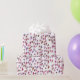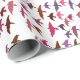 En flock fåglar i skuggor av rosa och lila flyger över himlar i detta sjöande och vilande mönster. Hitta fler objekt i det här intervallet.