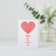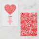 En visitkort med ett attraktivt flockats blom- dragit rött för hjärta design på guld. Baksidaen visar en specificera av blommateckningen.