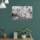 En svart och vit poster som visar flocken av fåglar som börjar flyga