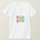 Den här t-shirten innehåller meddelandet "Flow with Life" (Flow med Life) i en sjudande multifärgad-design. Varje brev brinner med ett annat färg och skapar en känsla av rörlighet och energi. Det är perfekt för dem som har en positiv och färgstark syn på livet!