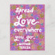 Detta är en mycket detaljerad vismisk, zentangininspirerad typografisk teckning som innehåller ett citat som är populariserat av Mor Teresa i Calcutta. Hennes ord påminner oss om att sprida kärlek vart vi än går. Texten är skriven i ett sött konstnärligt brev stil, där man betonar ord "Kärlek" eftersom det är designat i en storlek som är lite större än resten av texten. Blommor från många ritas runt texten. Det finns också färgstarka fjärilar i ljus orange, rosa, ljusblått och royal blått designat att visa sig som om de flyger runt talesättet och blommorna. Dessutom finns det små diamanter i gulten och små vita cirklar som ritas slumpmässigt runt texten, blommor och fjärilar för att göra att teckningen ser mousserande och glittrande ut. Bakgrunden ritas med svart, intrikat arbete och är färgad mellan lila, ljus rosa och röd.