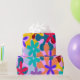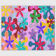 Detta papper har 1970-talets återdesign av överlappande blommor i rött, blått, lila, gult, orange och rött. Färgstark, ljus och roligt.