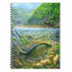 Ett kaskad med glansig regnbåge färg avspeglar skalorna på en vacker flodfisk av skal, och simmar mot bergen där en mamma björn och hennes unge behålla en ivrig öga ut för frukost. Vattenfärg och gouacher-målning av Amanda Diehl